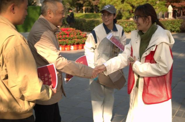 参观完场馆,同学们向来往的游客分发宪法宣传传单,宣传宪法知识。传单的发放让游客们对宪法有了更深的认识,收获了他们的大力支持。这一行动,不仅传播了宪法知识,更是一次生动的社会实践。