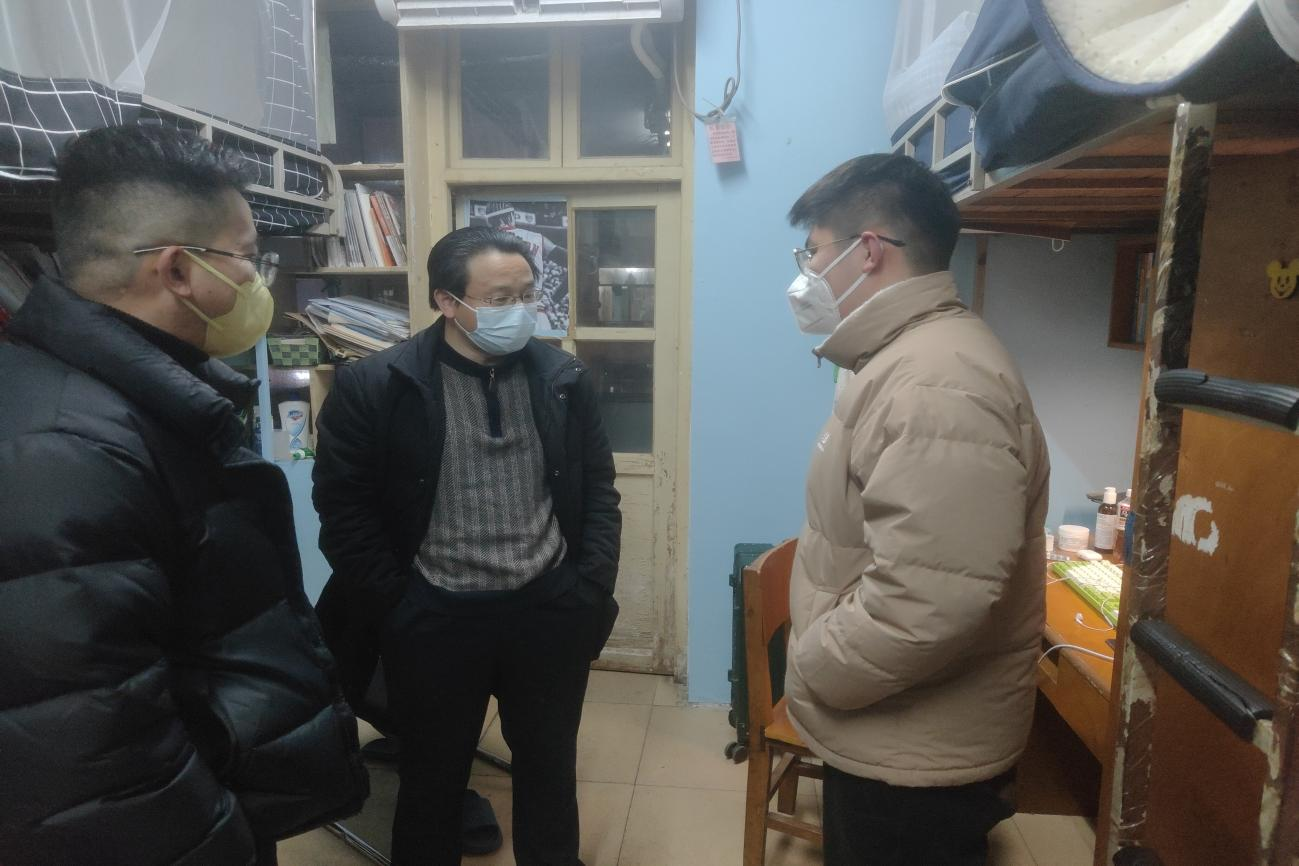 邹爱华等人前往二期C栋等26个学生寝室进行走访。邹院长在关注学生寝室的生活基础设施情况的同时,对毕业学生的论文撰写情况进行询问并提出针对性的指导意见,叮嘱学生做好个人疫情防护,合理规划学习时间。
