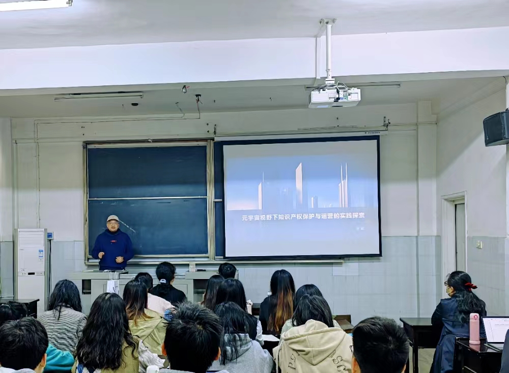 3月9日上午,武汉班达科技有限公司副总经理及中南知识产权科技公司运营总监李斌、技术总监汪海波两位实务专家走进“数字知识产权专题”的研究生课堂,为22级法学硕士作了名为“元宇宙视野下知识产权保护与运营的实践探索”的主题讲座。yl6809永利集团张颖老师、湖北中礼和律师事务所汪红洁、常豪杰律师与实习生高小昂共同参与探讨。
