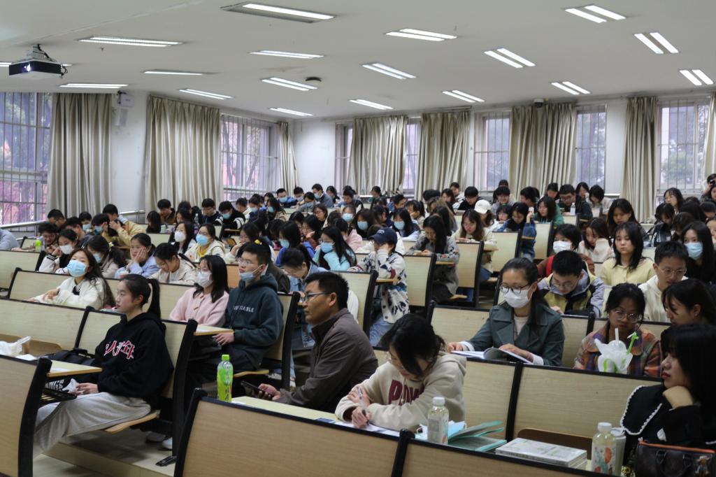 张梦婵讲到时代、改变、年轻、行动四个关键词。她指出当前人工智能快速发展,互联网时代日新月异,同学们要与时俱进,科学合理地做好职业规划。现如今,高等教育已经大众化,大学生在求职时应改变就业观念,“脱下孔乙己的长衫”,去基层一线历练,“向下兼容”。同学们正值青春,奋斗正当时,要趁年轻不断尝试,去试错,在社会中接受历练与打磨,在此过程中不断丰富完善自己。不要让自己的心忙着,身体却躺着,有规划就要积极行动,不能躺平,拒绝拖延。