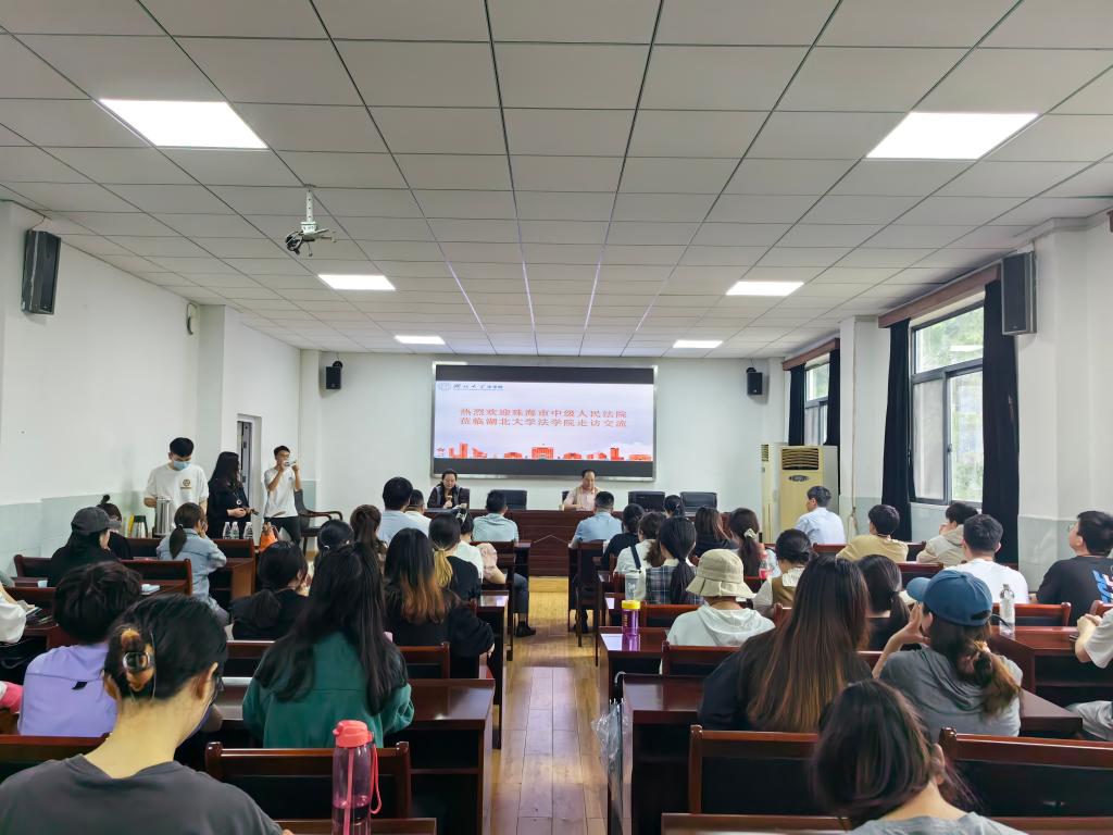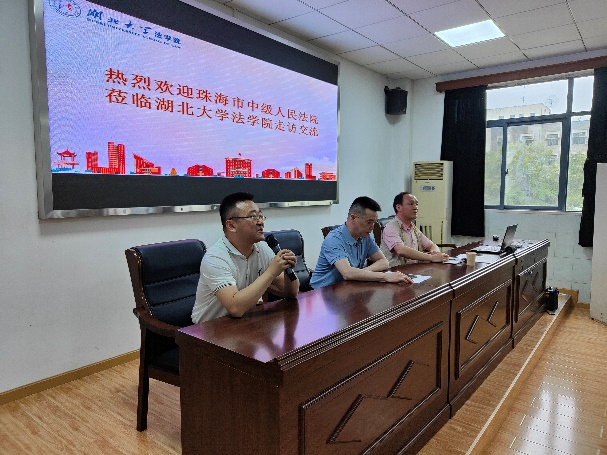 4月18日珠海市中级人民法院党组成员、政治处主任蔡强、政治处副主任、四级调研员邓善林率香洲区法院党组成员、政治部(督察室)主任谢明骥,金湾区法院党组成员、政治部(机关党委、督察室)主任张杰,珠海中院教育培训科副科长曾汐一行来我院走访交流。学院党委书记焦新曦、办公室主任禹妍、学生工作办公室主任白连立教师代表硕士生导师曾丽洁、徐梦醒以及我院本科生、研究生代表一同参加了交流会。