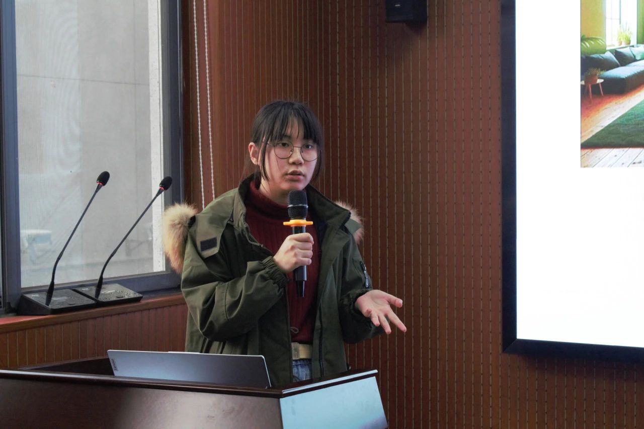 本次芯宠辅导站的主要设计者李好同学对芯宠辅导站的设计理念以及设计方式进行了详细地阐释,她表示辅导站的设计基调是温馨,为结合芯宠元素“律小藻”,她在设计中增添了许多绿色的气息,希望同学们可以感受到绿植带来的惬意和悠然。同时她表示,她是运用微软的人工智能desinger进行的绘图,并希望大家也可尝试以高新技术赋能专业知识。