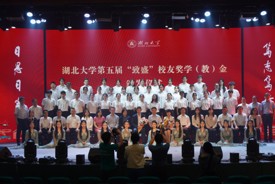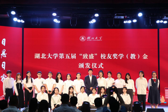表演环节,开场舞一曲惊鸿,轻歌曼舞,舞态生风,展现了湖大学子意气风发的精神面貌;视频《“致盛”学子满天星》,表达了“致盛”学子们对致盛集团的感恩之情;师生合唱歌曲《万水千山》,体现了润斌校友与湖大学子的温情常在;学生代表诗朗诵《正当时》,讲述了润斌校友艰辛创业的奋斗之路,更生动诠释了湖大人的爱国情和报国志。