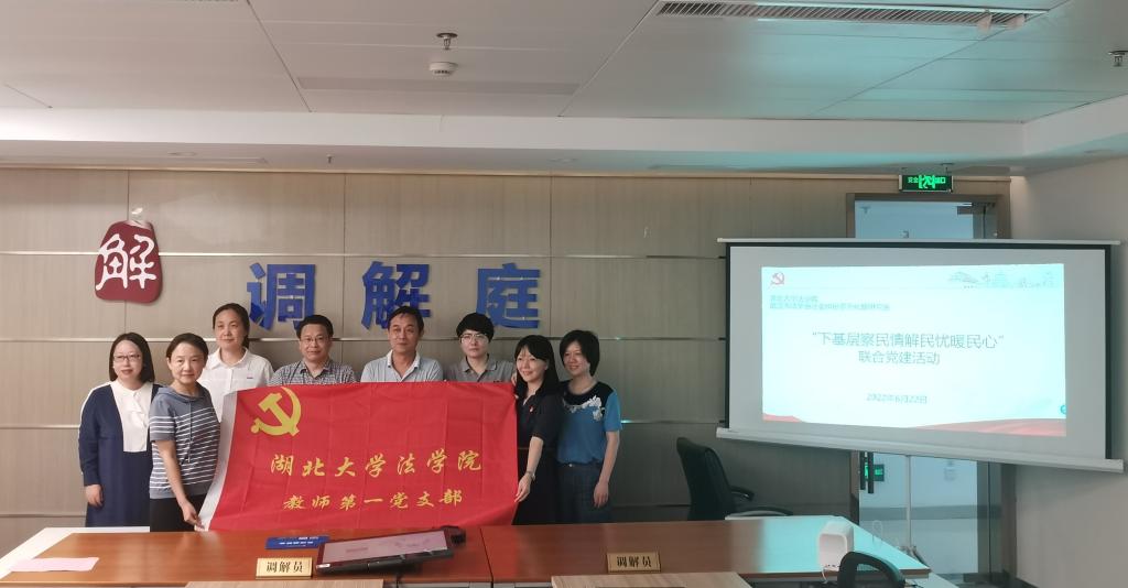 6月22日下午,根据yl6809永利官网集团关于开展党员干部 “下基层 察民情 解民忧 暖民心”实践活动方案要求和动员会精神,为积极探索党建工作新模式,切实增强党建活动效果,营造良好的共建环境,我院教师第一党支部与武汉市法学会社会纠纷多元化解研究会(“调解网”)就此开展联合主题党日活动。