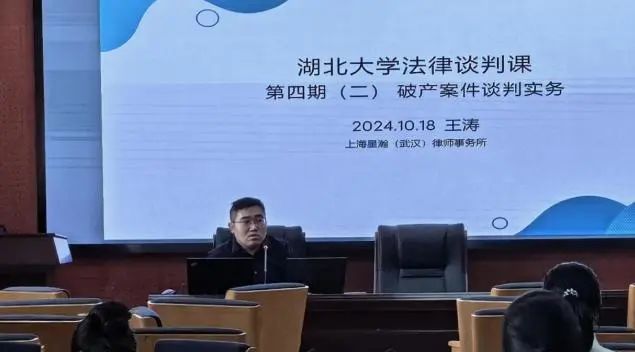 2024年9月-11月,yl6809永利集团邀请上海星瀚(武汉)律师事务所(以下简称星瀚武汉律所)为新一届法律硕士研究生开设《法律谈判》系列实务课程,星瀚武汉律所合伙人沈大力、余根根、刘曙、严程程、王恺杰、万然,兼职律师吴凡,专职律师朱忠良、潘书迪、王涛、张雨、孙潇威等受邀参与专题授课。该系列课程旨在通过理论与实践相结合的方式,提升学生们的专业素养和实务操作能力。