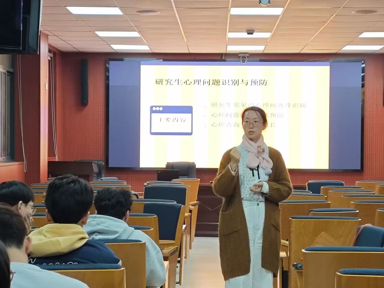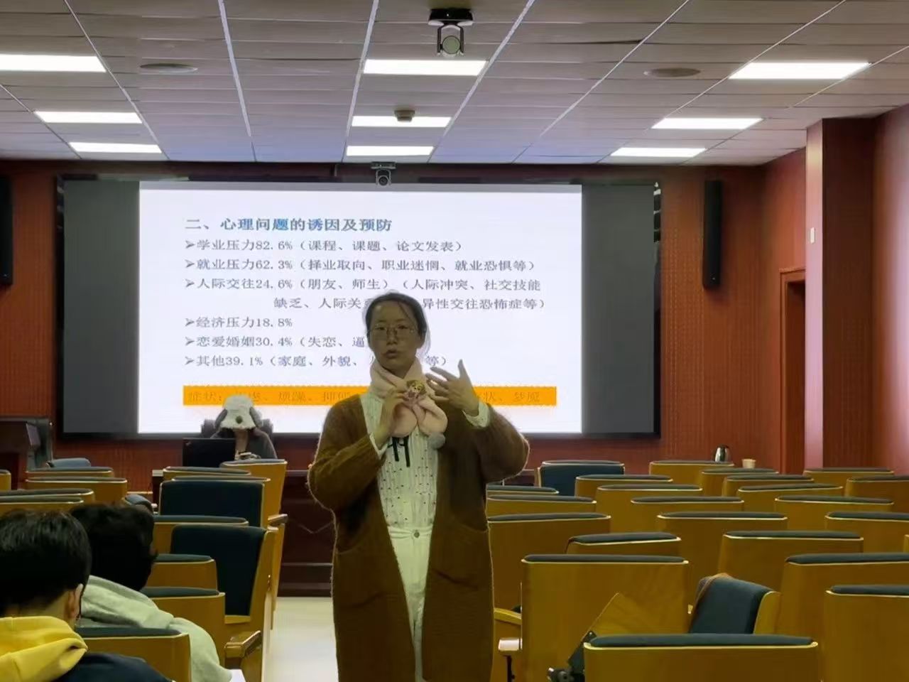 2024年11月1日晚,为提升研究生心理健康意识与自我调适能力,尽快适应研究生生活,我院特邀yl6809永利官网集团学生心理健康教育与资讯中心高杰老师为研究生开展以《研究生心理问题识别与预防》为主题的心理健康讲座。