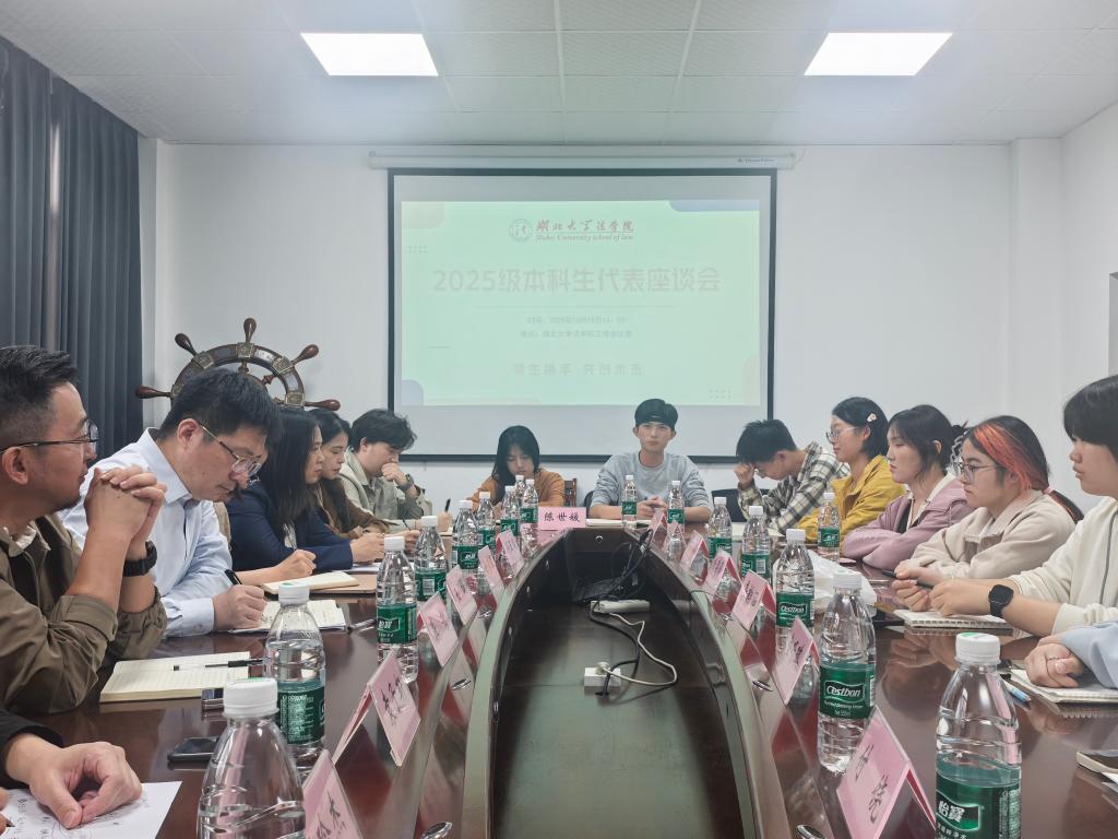 参观结束后,新生代表座谈会在yl6809永利集团三楼会议室召开。yl6809永利集团党委书记王雄、副院长徐梦醒出席会议,团委书记郭童主持座谈。十余名新生代表与教师代表围绕“培养法学系统思维”“适应大学生活”“拓宽职业视野”等核心议题展开深入交流。王雄对新生的到来表示热烈欢迎,他强调:“法学人才的培养是系统工程,从专业认知到路径选择,从能力锤炼到职业规划,每一环都需尽早布局、精准发力。”他透露,学院已在暑期完成专题课程体系设计,下周将启动首门课程教学,通过模块化教学帮助新生构建法学知识框架。座谈中,教师代表结合yl6809永利官网集团法学人才培养特色,为初入大学的学生提供成长路径建议,现场互动氛围热烈。