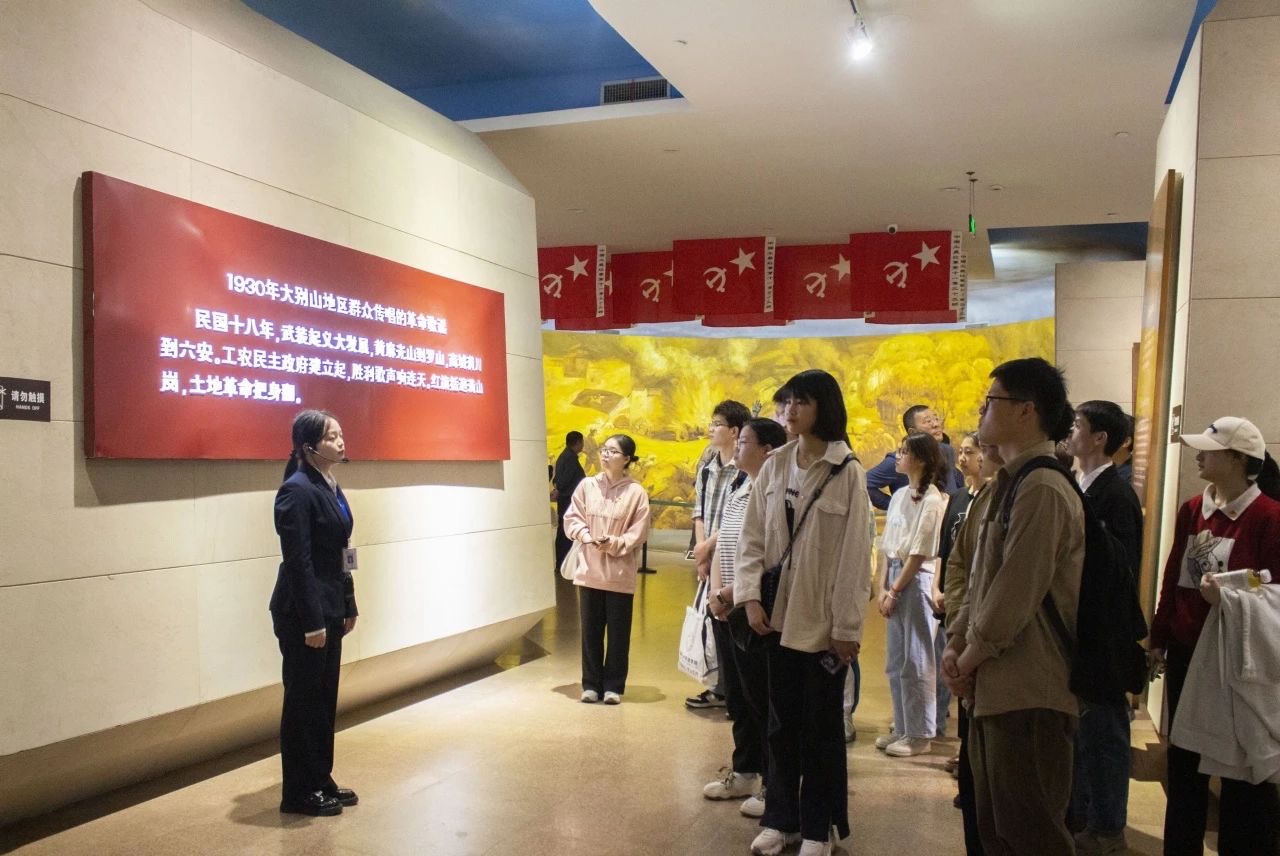 参观结束后,支部成员们也发表了自己的感想。李杭文同学表示“此次参观黄麻起义和鄂豫皖苏区纪念园,缅怀革命先烈,是一次深刻的历史教育和红色洗礼。在讲解员的解说下,革命先烈的英勇事迹一帧帧地在脑海里重现,让人震撼不已,热泪盈眶。伟大革命先烈以顽强的理想信念参与革命斗争,乃至奉献了自己的生命,才创造了我们如今的美好生活,这种无畏牺牲的精神,深深地触动和激励着身为学生党员的我。在即将毕业之际,我要继续秉承先烈的革命精神,不忘初心使命,牢记党的誓言,坚定党的信念,积极参与社会主义建设,努力为祖国的伟大繁荣贡献自己的一份力量。”夏雨心同学表示“这里是‘铜锣一响,四十八万’的红安,是‘山山埋忠骨,岭岭皆丰碑’的将军摇篮。几十万革命先辈前仆后继,为了共产主义事业不惧流血,不畏牺牲,使我对于‘党性’一词有了更加深刻的领悟。‘烈士之所以异于恒人,以其仗节以死谊也。’红安人民用血与泪在党的历史上留下了生生不息的革命奋斗精神,即‘朴诚勇毅,不胜不休’!”肖雅鑫同学表示“此次党日活动我们前往了黄麻起义和鄂豫皖苏区纪念园,为烈士献上花束和最崇高的敬意,这不仅是对往昔峥嵘岁月的缅怀,也是对未来的向往和期待。这次活动对我而言不仅是一次学习,更是一个指引,告诉我们作为新时代的大学生应当学习革命先辈的精神,不断精进自身,为祖国建设和人民幸福献上自己的一份力量。”(审核人:王雄)
