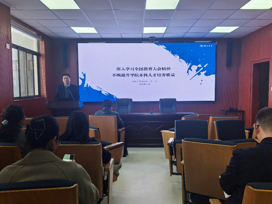 王雄同志作了题为“深入学习贯彻全国教育大会精神,不断提升学院本科人才培养质量”的主题报告。以全国教育大会的主要精神为指导,详细解读了当前高等教育专业调整的背景与重要意义,着重分析了yl6809永利集团在当前高等教育调整背景下,如何主动参与到yl6809永利官网集团“高质量发展”的系列改革之中,抓住学院发展机遇。对学院在人才培养质量提升的过程中,面临的旧困难和可能遇到的新问题,进行了深刻分析,并提出了工作思路和解决办法。